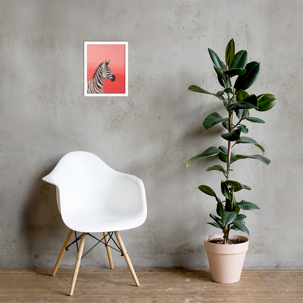 Zebra poster on pink minimal background. Add a pop of color and stripes to your home decor.